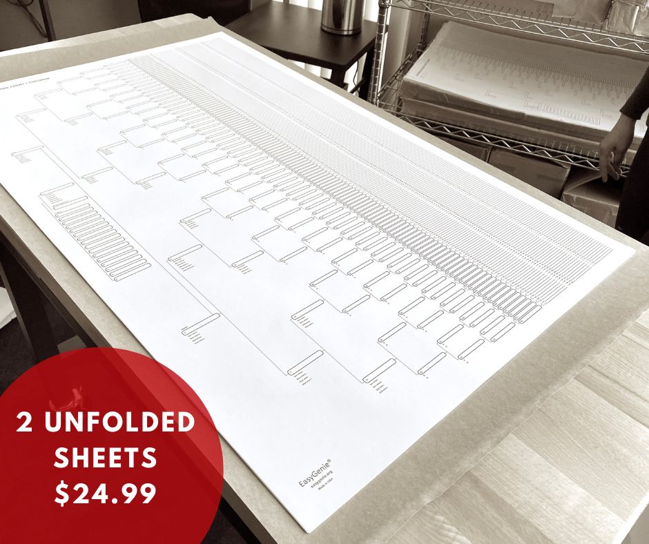 ✅ Our BIGGEST genealogy paper: 22 inches wide by 36 inches tall, rolled for fold-free shipping