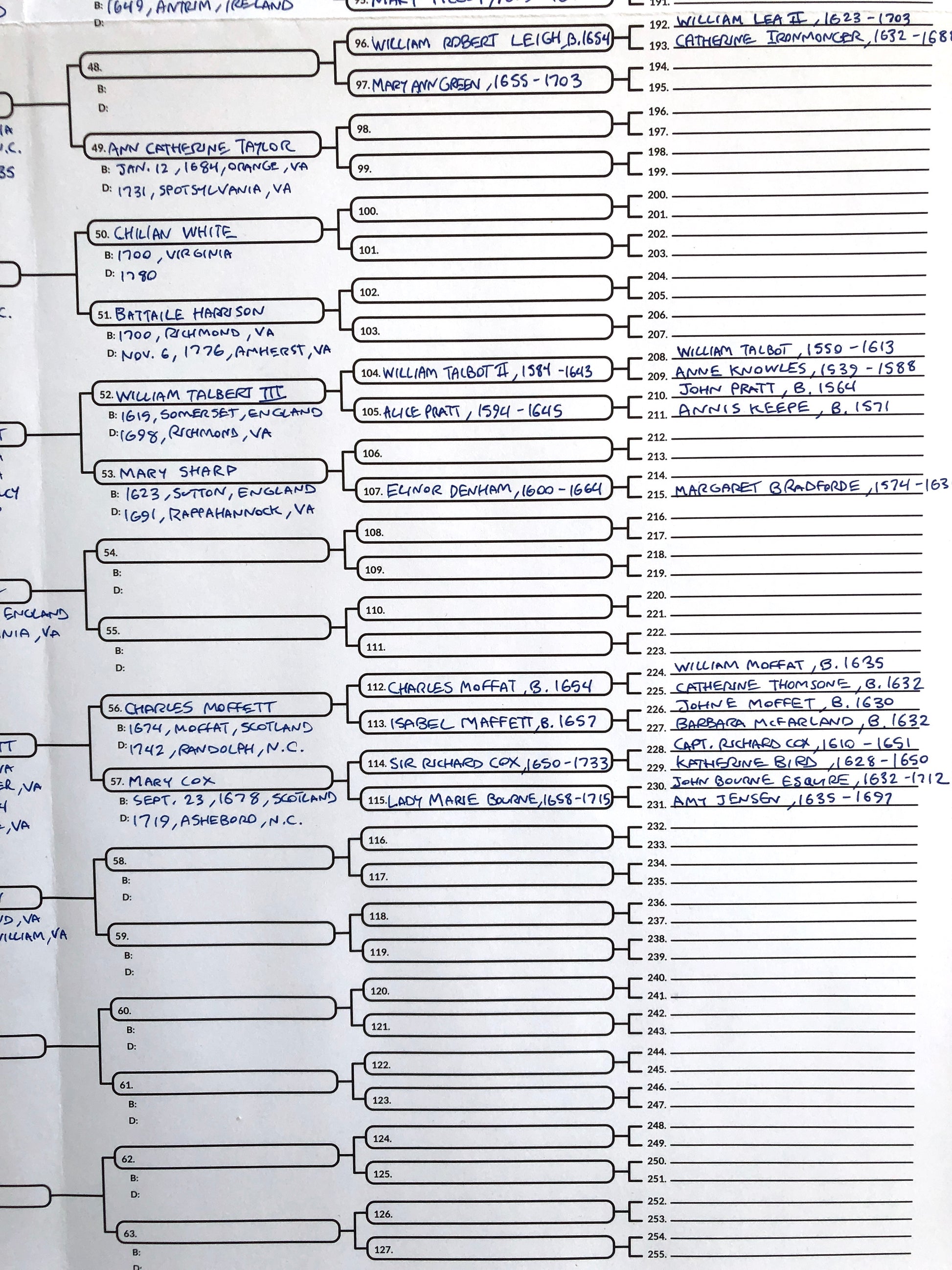TEN Blank Pedigree Charts (8 generations/256 names per sheet)