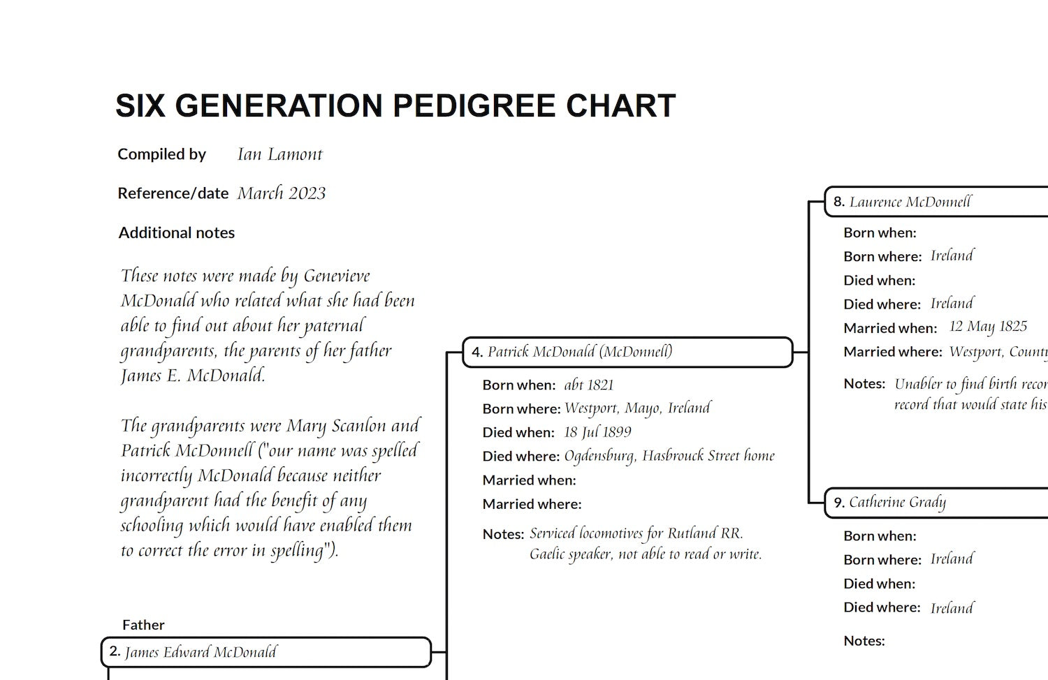 In-Depth Documentation: Record 2 parents, 4 grandparents, 8 great-grandparents, 16 GG-grandparents, and 32 GGG-grandparents.