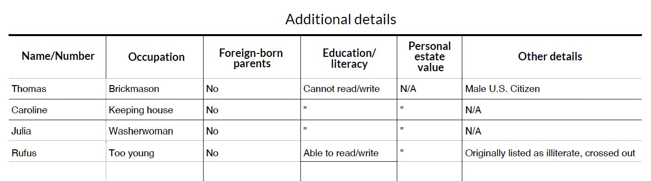 The forms include basic details gleaned from the 1870 census such as name and occupation, as well as crucial information that appeared for the first time ever: